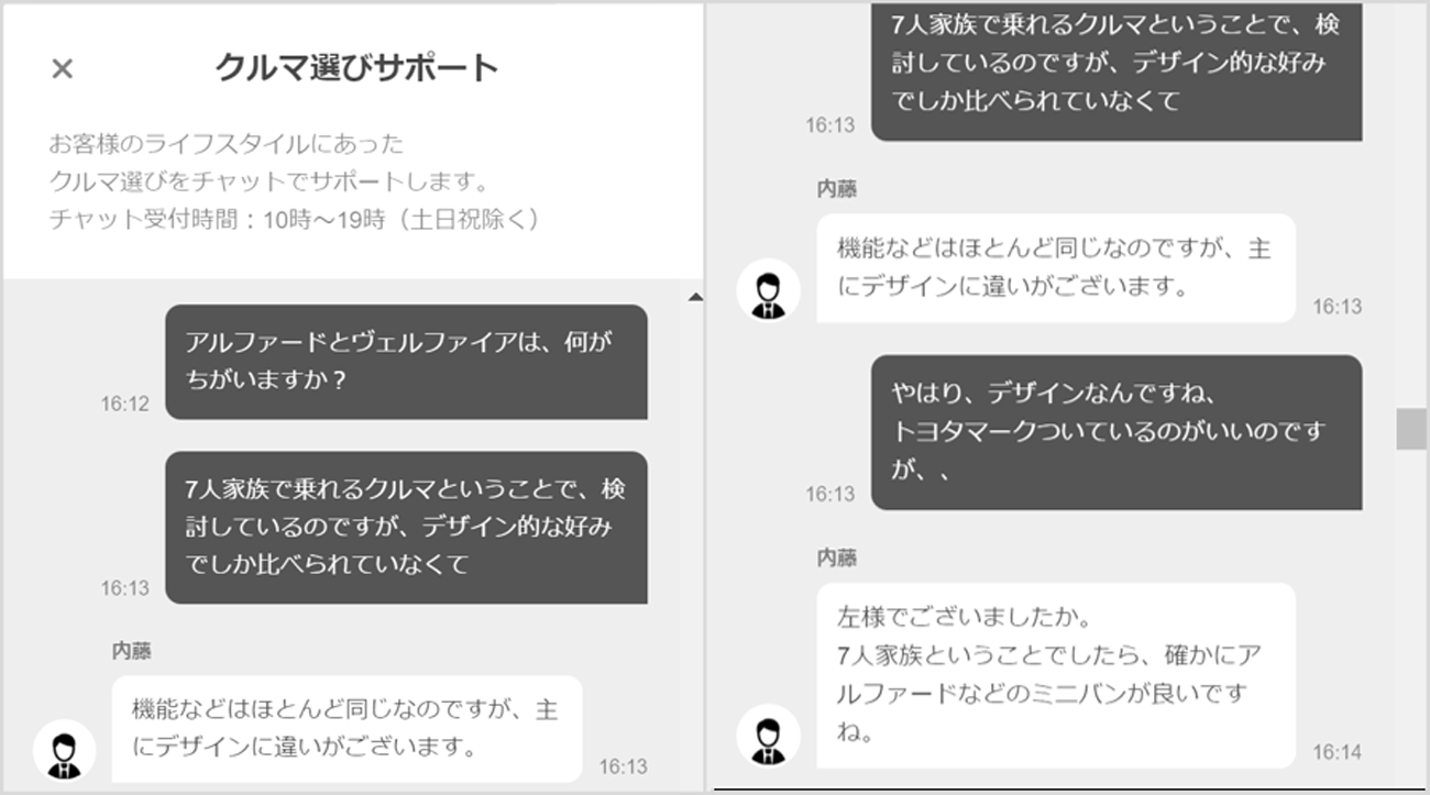 夏井:チャットが、Webで検討するお客様がWebからリアルに飛び出す最後の後押しになればと考えていますので、チャットでの接客を担当するオペレーターは、各車種の詳細な情報を覚えて対応しています。