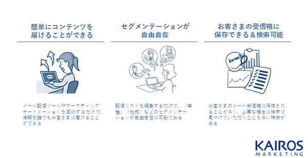 DXと言いながらも、多くの企業がメルマガの配信から始めています。メルマガは、20年以上前からあったBtoBマーケティングの初歩的なアプローチではあるものの、ツールの導入も含めて企業の規模や予算に関わらず手軽に始められることが背景にあるようです。
