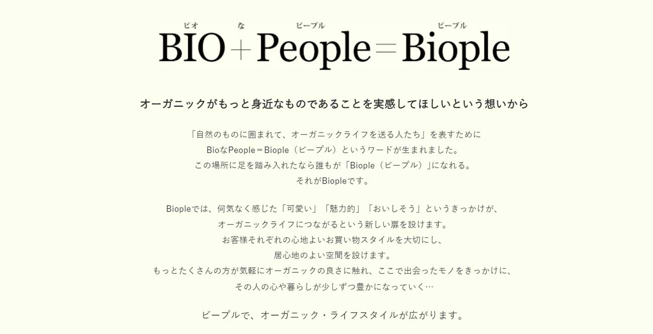 椋林:ひとえに「オーガニックライフを広めたい」という思いがあります。たとえば、2013年に立ち上げた「Biople(ビープル)」というブランドがありますが、これは本当の意味でオーガニックライフを日本に広げていくためには、欧米の先進エリアのようにオーガニックの商品をデイリーに当たり前に使えるようにしていかなければいけない。そうでなければ、Cosme Kitchenは奇をてらったハイエンドな空間になってしまう――そう考えて、誕生させたブランドです。