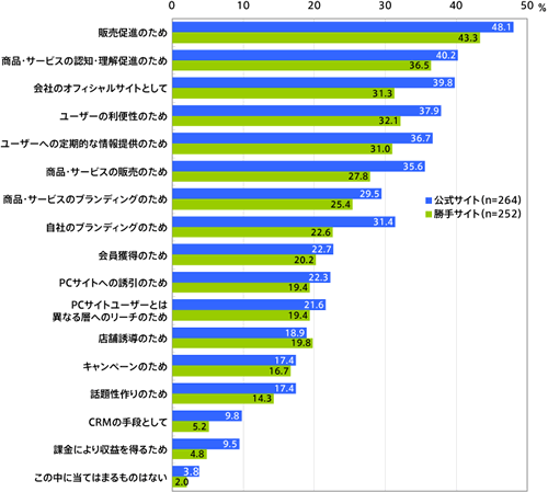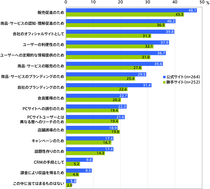 モバイルサイトの活用目的(複数回答)【※公式サイト・勝手サイト保有企業】