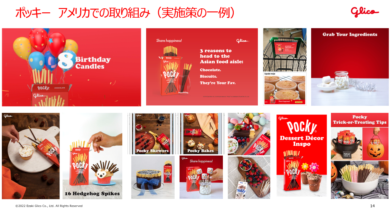 玉井氏はポッキーの具体例として、アメリカの広告を紹介する。江崎グリコは2003年よりアメリカでポッキーの販売を開始。目立った新商品の発売をすることなく、ここ3年間は現地での売上を毎年平均1.2倍ずつ伸長させているという。