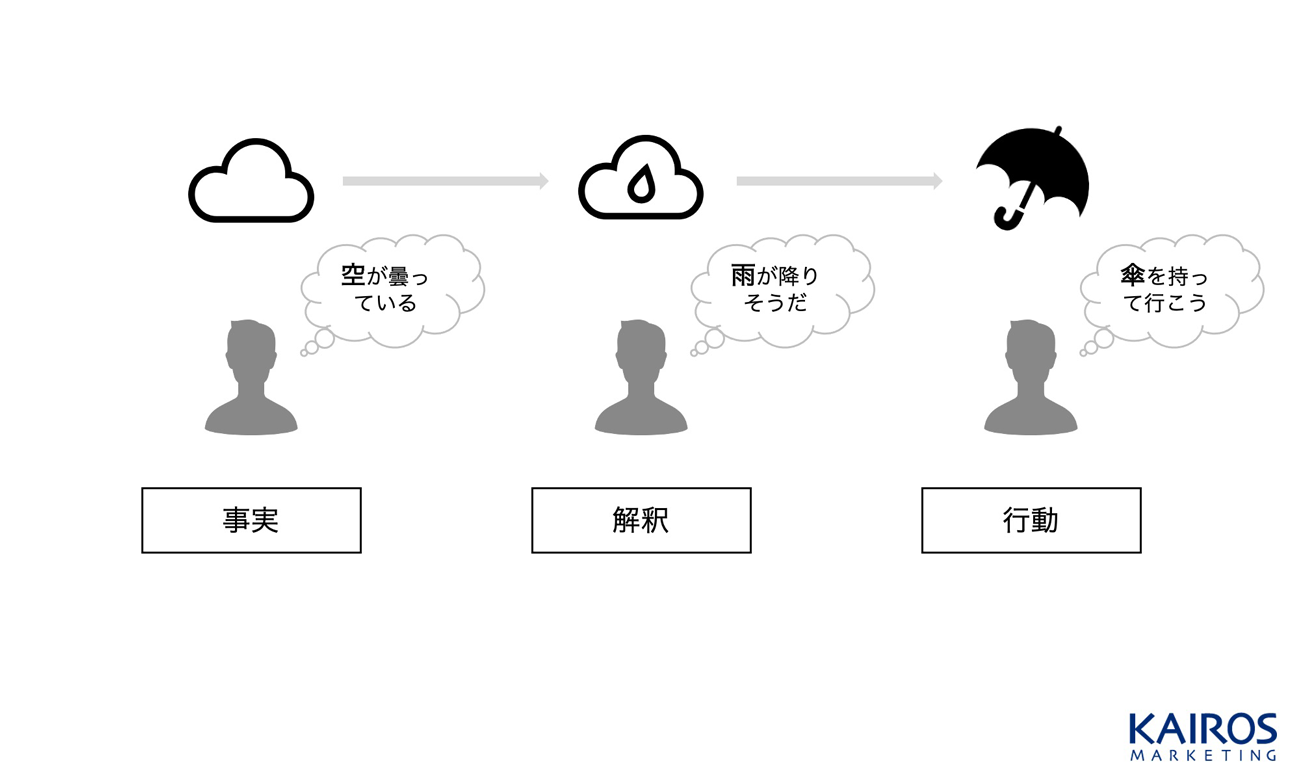 続いて、空雨傘。空雨傘もコミュニケーションのフレームワークです。「空」が事実、「雨」が解釈、そして「傘」が実行を意味しています。