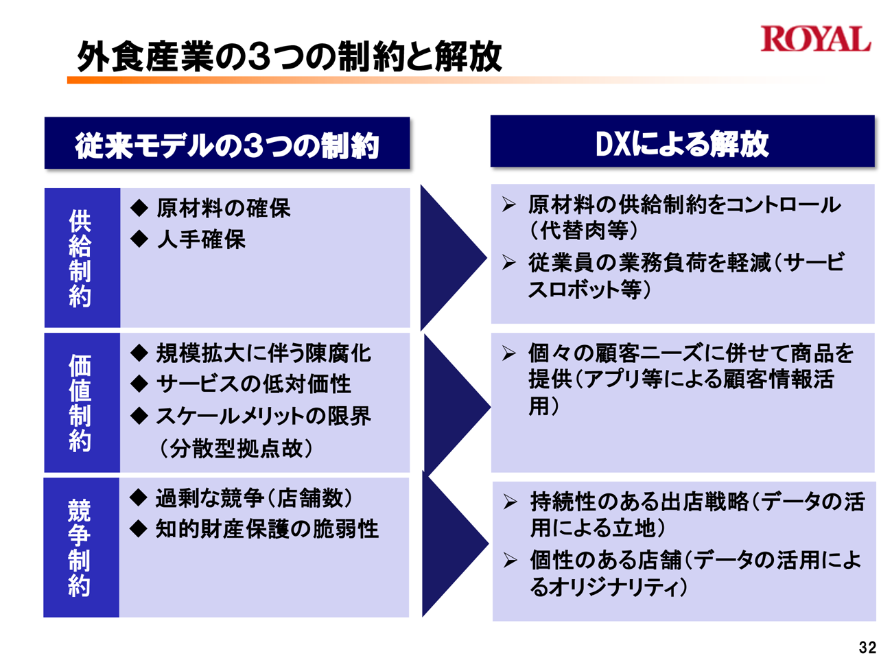 波が緩和できれば生産性も向上できるかもしれない。ロングテールを実現すれば、単価を上げられるかもしれないし、低密度のエリアに出店できるかもしれない。顧客との新たな接点ができれば、今まで差別化ができなかった顧客にアプローチができるかもしれない。元々の課題や制約をDXが解放していく可能性があるわけだ。