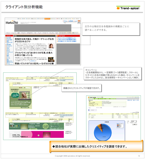 「例えばテレビCMは番組の間に流れるわけですが、実際に目にすることでコンテンツとのハマリ具合などが分かります。これは、プランニングシートや資料に目を通すだけでは分かりませんよね。インターネット広告もそれは同じで、単純にクリエイティブの位置やクリック数だけではなく、どのようにインターネットの中でハマッているのかを知る必要があるのです。『Trend-spice!』なら、それを簡単に調べられます」