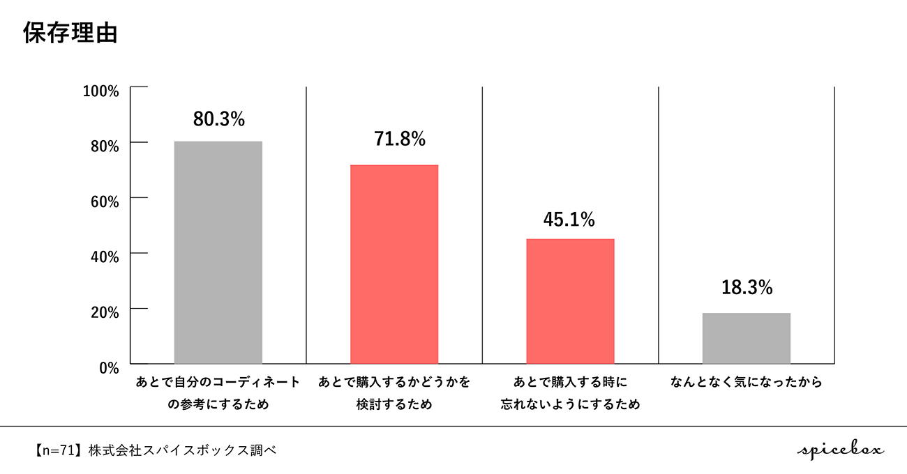 インスタグラムでブランドの投稿を保存した人に質問(n=71)。