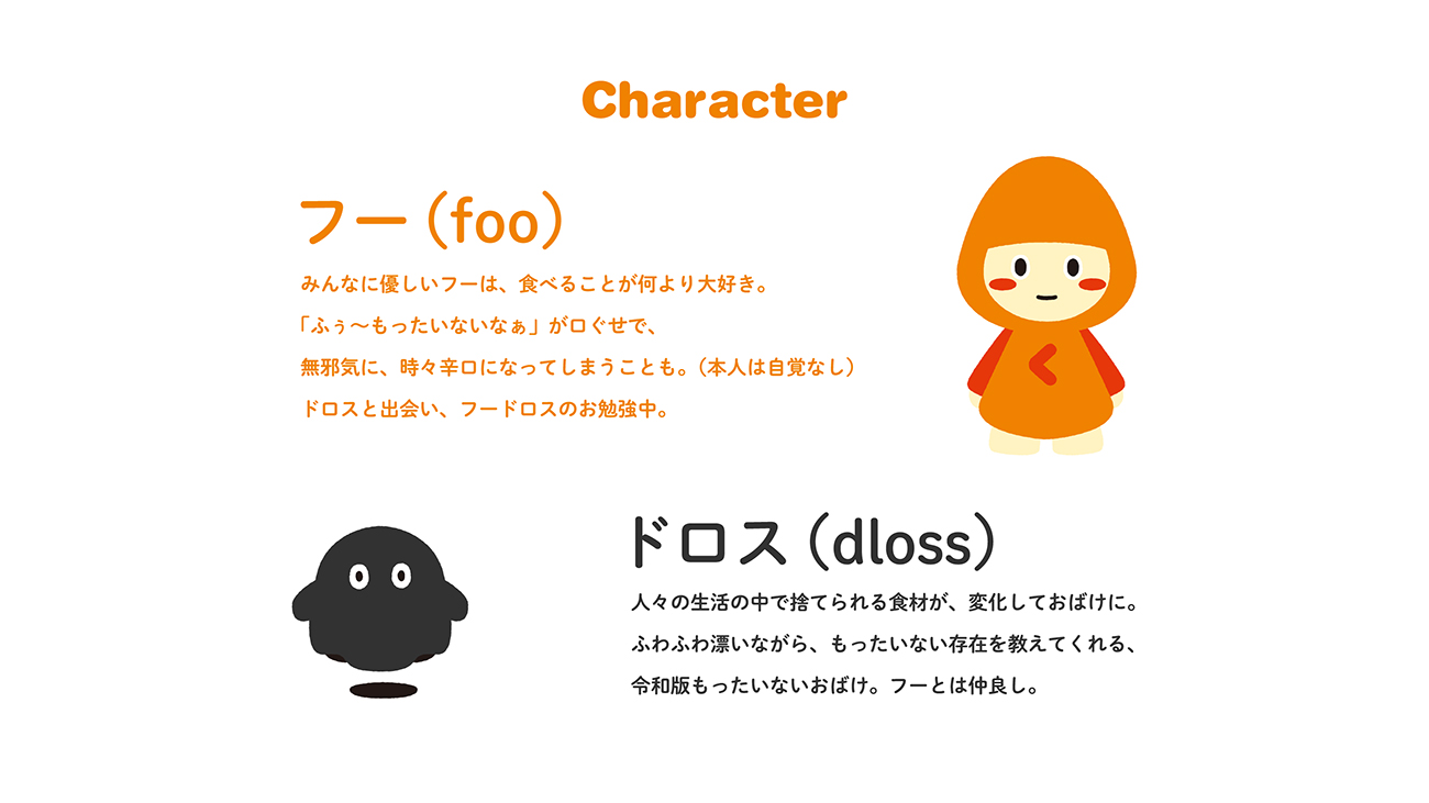 牧野:そして、ファミリー層の利用が多いことから、子どもにもフードロスについて知ってもらえる機会を作るために、「フー」と「ドロス」というキャラクターも新たに作成しました。