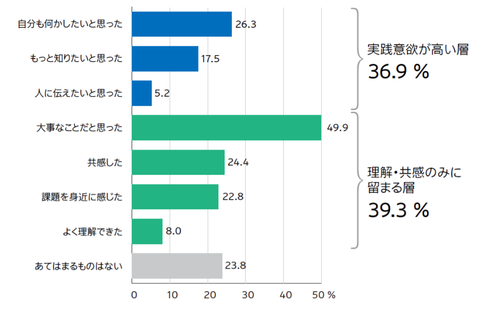 大森(電通):国内のSDGsの認知度は年々向上していますが、実践に移す意欲のある方はまだ限定的なようです。