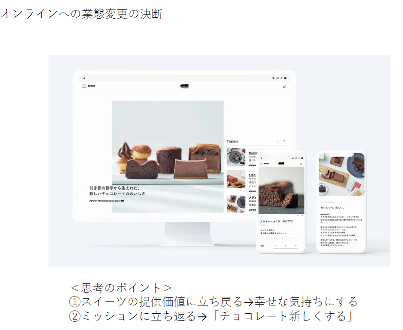 さらにブランドパーセプションのアップデートも行った。「本格的オンラインスイーツと⾔えばMinimal」というパーセプションの獲得を目指して、ECサイトもリニューアルした。