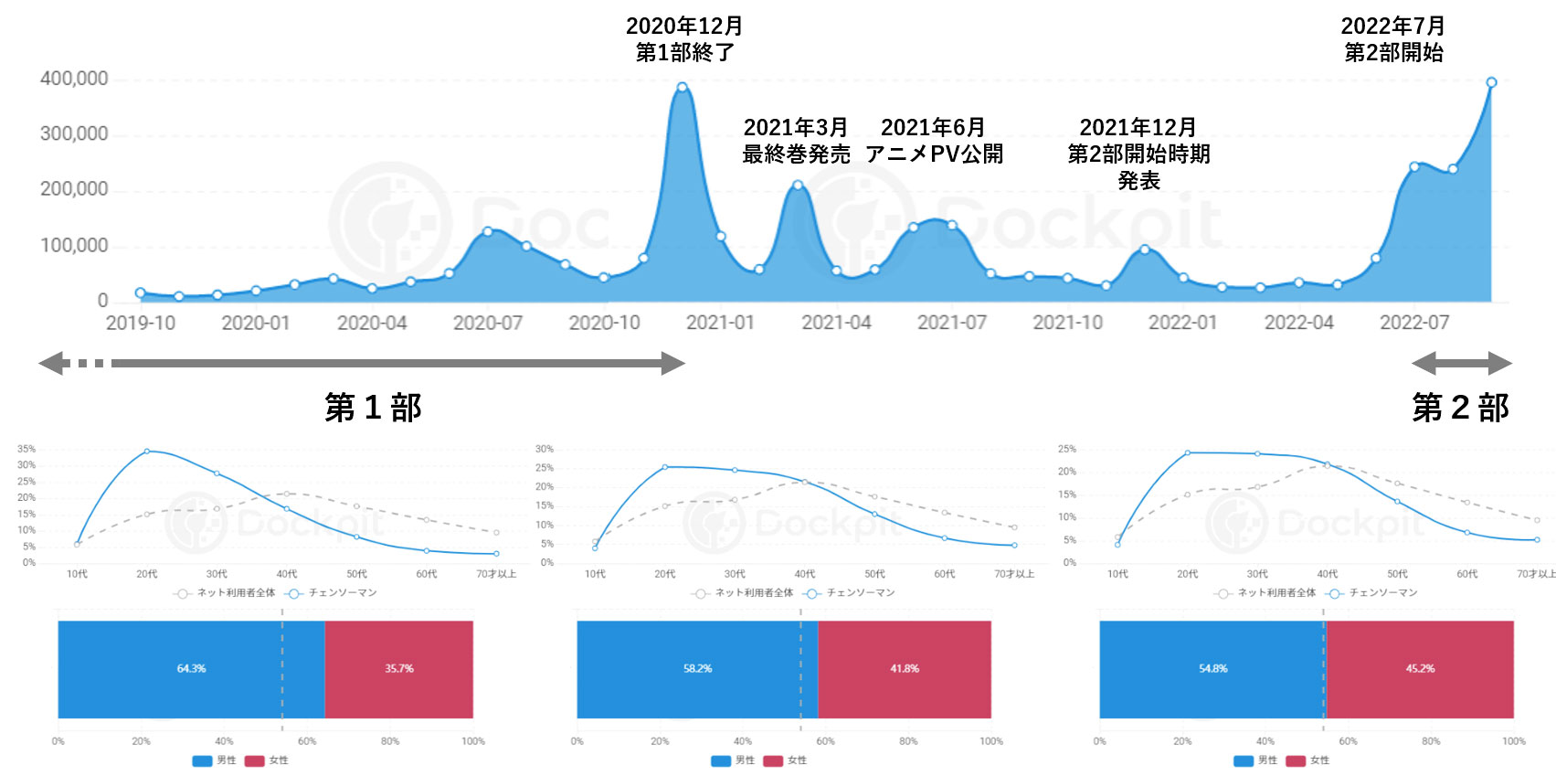 おもしろいことに、実は他のタイトルについても、チェンソーマンと同様の傾向が見られています。