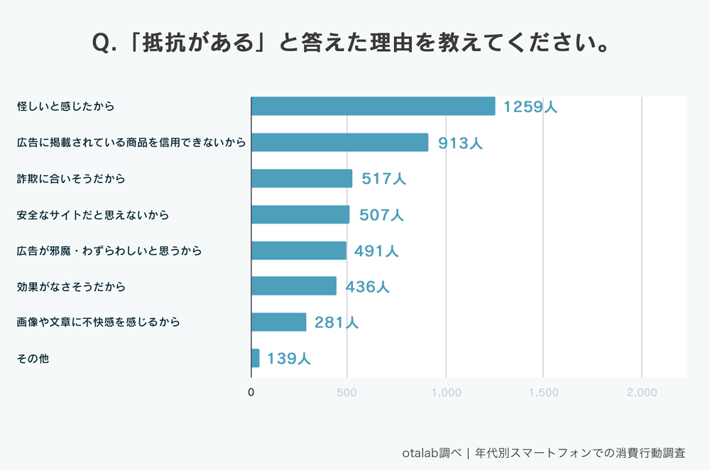 『特に気にならないから』といった回答も多く、広告のアプローチや掲載の仕方で抵抗なく商品を購入する人も一定数いることがわかった。