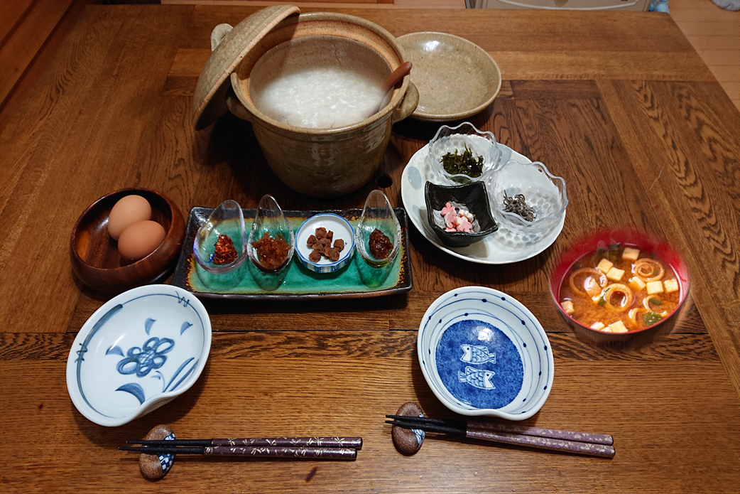 まず、「おかゆは土鍋で炊くんだ」という気づき。おかゆがお茶碗に盛られて登場しているのではない。おそらくお茶碗に盛られて出てきた時点で、ごちそう感は半減するのかもしれない。とすると、キーワードとして「ごちそうごはん」というものが出てくる。どうだろう、米飯がごちそうになるという発想は、改めて考えると発見となるのではないだろうか?