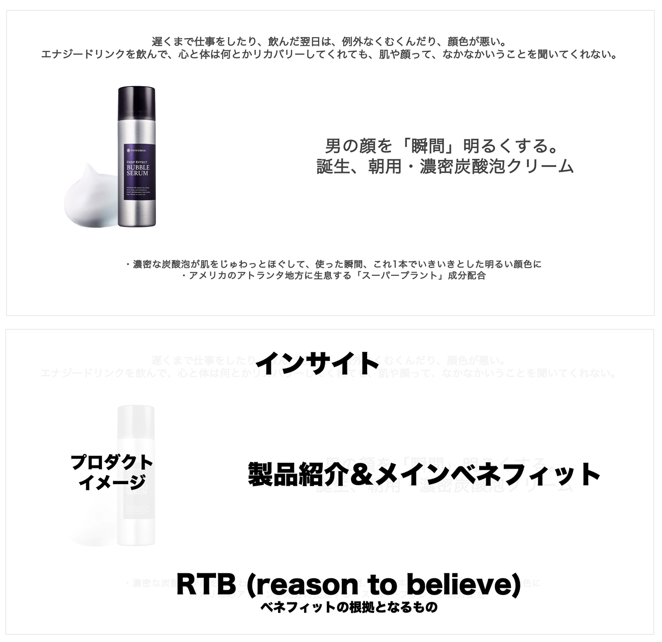 私自身のユニリーバでの経験として、多くの消費財メーカーはこのコンセプトのアウトプットまでに数ヵ月の消費者調査を要して完成させますし、何度も何度もコンセプトを書き直します。ここで顧客に受け入れられる強いコンセプトを書けるかどうかが、売れる製品を発売できることに直結します。
