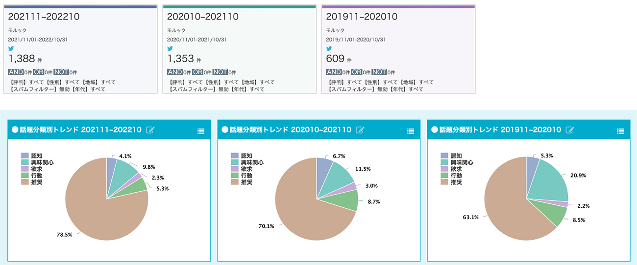 分析期間:左から2021年11月~2022年10月、2020年11月~2021年10月、2019年11月~2020年10月