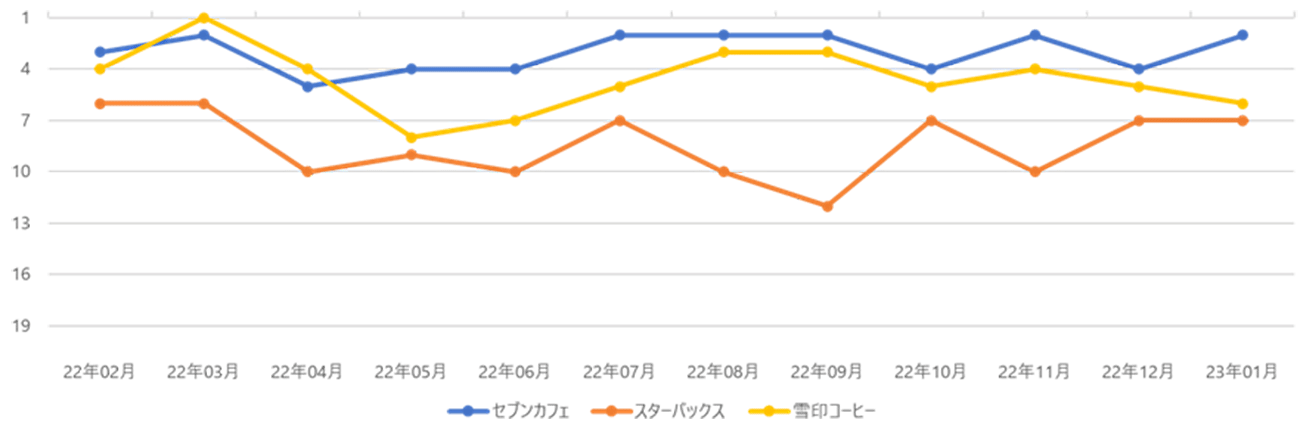 また、雪印コーヒーは2022年3月の新商品発売のタイミングで順位が高まっていることから、話題性を保つ工夫があることで「親しみ」「愛着」などのイメージが保たれていることがわかる。
