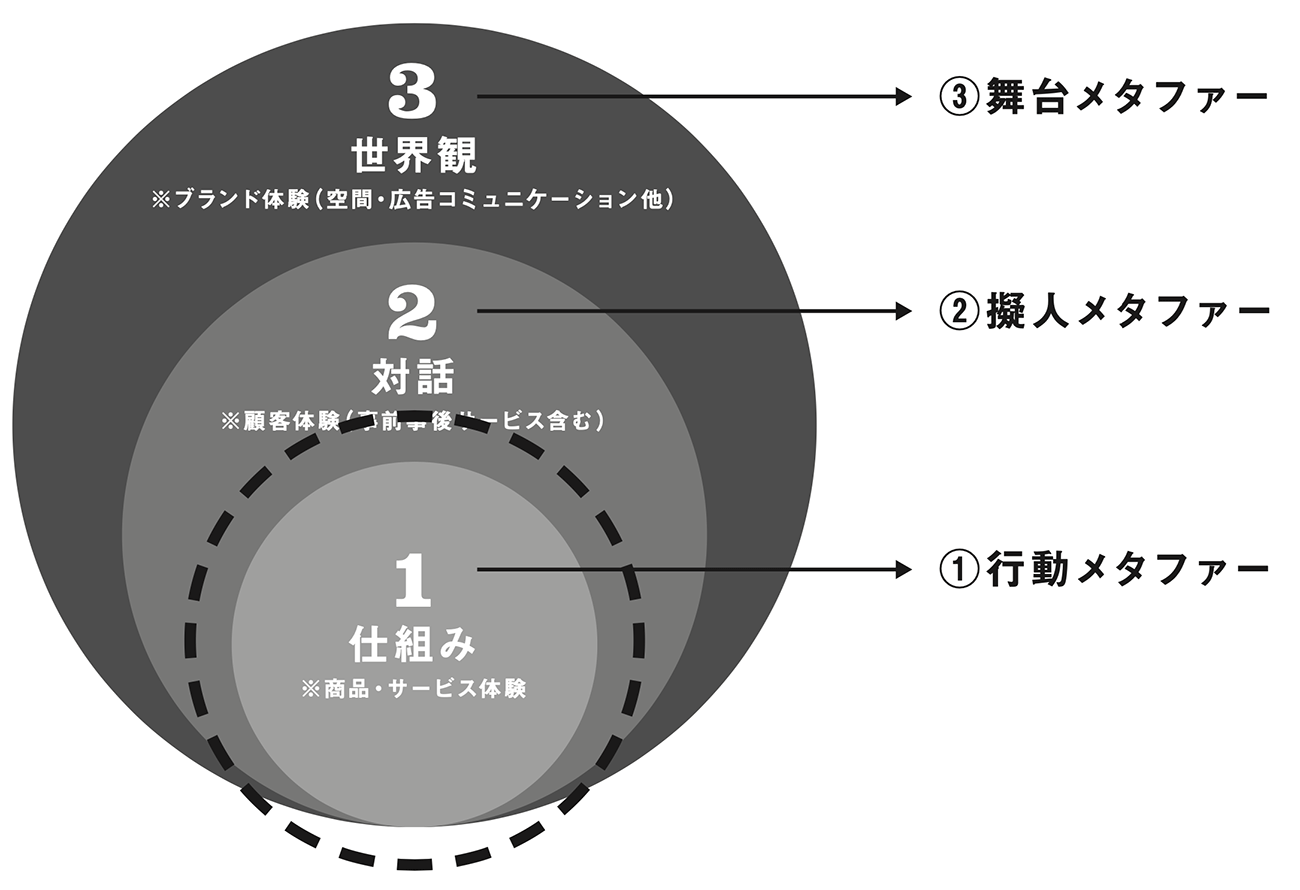 今回は試着サービスの体験を作りたいので、まずは仕組み体験を重視し、「行動メタファー」を活用して発想を膨らませていきます。