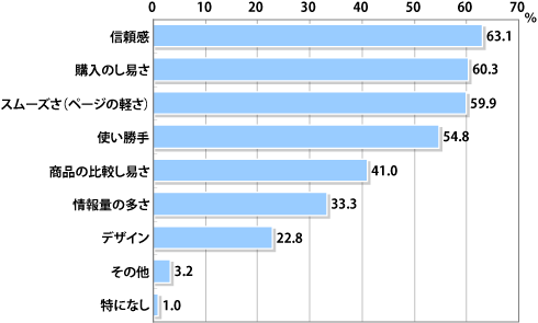 モバイルショッピングサイトユーザー「信頼感」「購入のしやすさ」「軽さ」を重視