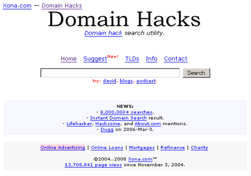 このDomain Hacksというサービスは、ある単語を入力すると、その単語を過不足なく使ったドメイン名を、世界中の国や地域のトップレベルドメインを駆使して提案してくれるというサービスです。