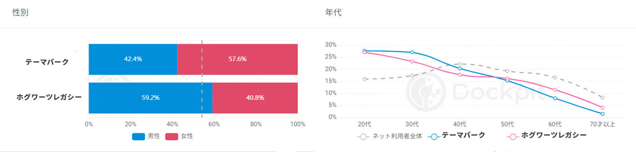 【クリックして拡大】「ハリー・ポッター」テーマパークとゲーム:公式サイト訪問者の性別と年代割合