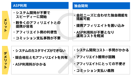 このように、独自にアフィリエイトを開発する場合にもメリット、デメリットは存在します。それぞれをよく吟味して選択することが大切です。