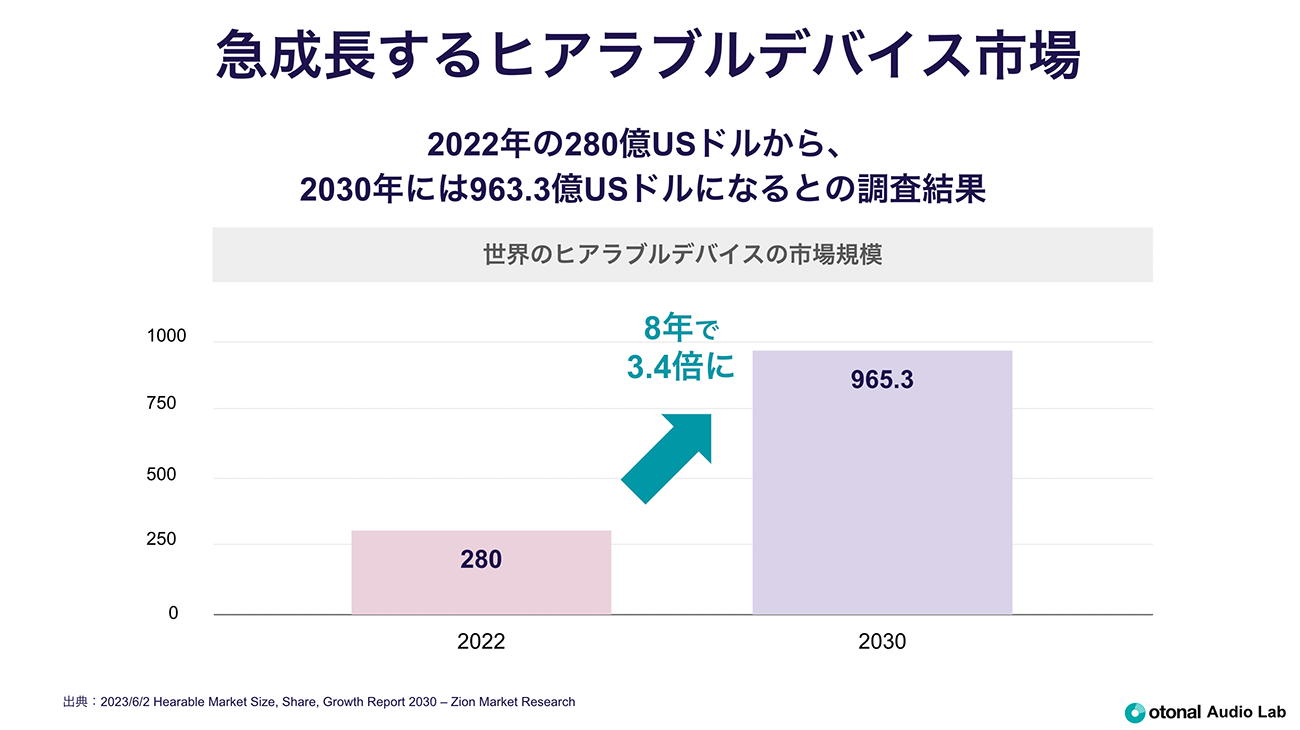 まず1つ目「デバイスの進化」について。近年音声コンテンツが注目を集めている世界共通の理由に、音声を聴取するためのデバイスの普及があります。スマートフォンの広告市場がiPhoneの浸透で生まれ拡大したように、音声コンテンツもデバイスの普及によって成長機運が高まっています。