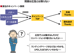 Web広告は4マス広告と違って情報を一方的に発信するだけではありません。ほとんどの場合、広告をクリックした先に自社サイトがあります。だからこそ多くの会社はランディングページに注意を払い、LPOを実施するのです。