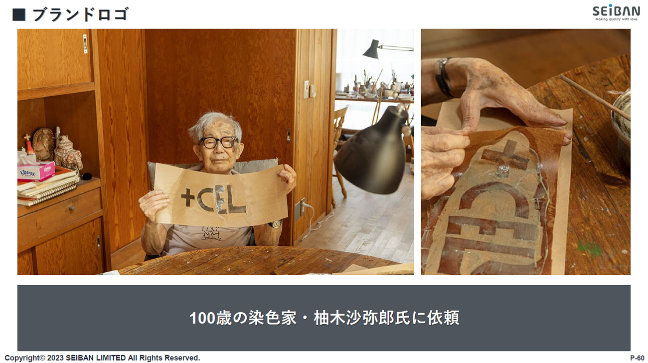 ブランドロゴは、こだわり家族というターゲットを心地よく表現してもらえる人にということで、2022年10月に100歳になった染色家の柚木沙弥郎(ゆのき・さみろう)氏に依頼した。そして、型染めで+CILのロゴができ上がった。