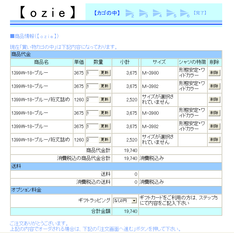 「ショップギア」の買い物カゴを利用したショッピングページ。