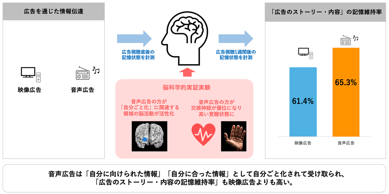 ラジオなどで聞くパーソナリティの声など、最も脳に近い器官である「耳」から入る音声情報は、目をつぶればそのタレントやパーソナリティが隣で話しているかのごとく脳が錯覚します。それが「会話」の疑似体験となり、非常に高い没入感や信頼性を発揮するのではないかと筆者は考えています。