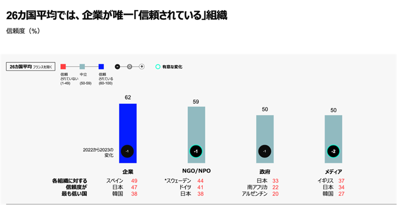 そんな中、2023年のエデルマンの調査結果によると、生活者が信頼を寄せる唯一の組織が26ヵ国平均で「企業」であるという結果が出ています。社会的なコンテキストでも、企業への期待値は年々高まる中、マーケターは何を見つめるべきなのでしょうか。