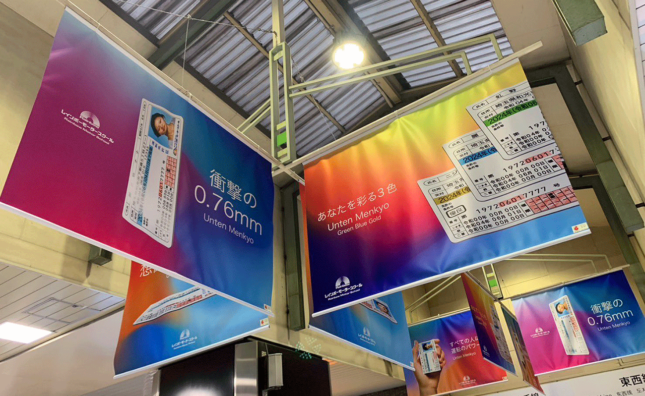 ユニークなクリエイティブといえば、自動車教習所を運営するレインボーモータースクールの広告も忘れられません。同社が2023年9月から展開していた広告では、運転免許証を誰が見ても欲しくなるようなスタイリッシュな演出で表現。