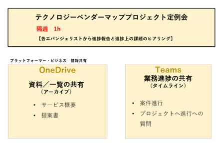 - プロジェクト進捗は、Teamsで、各種データは、OneDriveに保管