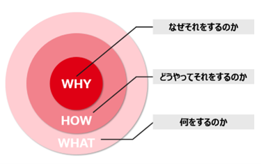 メンバーに何か頼みごとを行うときに「WHAT(何をやるか)」だけを伝えてはいけません。自分ごと化ができず、パフォーマンスが下がってしまいます。「WHY(理由)」を明確に伝えることで、目的に対して自ら協力する思考を促し、パフォーマンスを向上させます。なお、このように対話や思考をWHYから始める重要性は、サイモン・シネック氏が提唱する「ゴールデンサークル理論」でも説明されています。