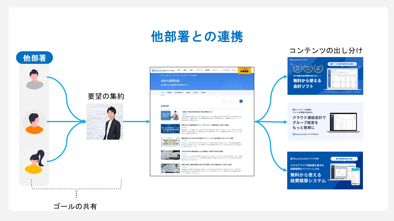 サイボウズ式と同様に、基礎知識シリーズでも他部署から記事化の相談をよく受けると清水氏。有意義な連携のためには、他部署との「ゴールの共有」が非常に大切だと語る。「コンバージョンの獲得」という目的を共有しておくことで、他部署からメディアへの依頼自体もゴールを意識した「マーケティング目線の依頼」になるからだという。