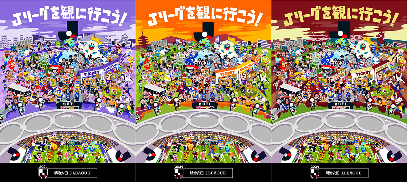 そこで、ビジュアルの背景や地面を各クラブのカラーに変えたり、その地域ならではの風景を加えたりした専用デザインを全クラブ分用意するアイデアを提案いたしました。作業はハードでしたが、「Jリーグのプロモーションの歴史を変えたい」気持ちで出したアイデアでしたから、どのクラブもこだわって制作しました。