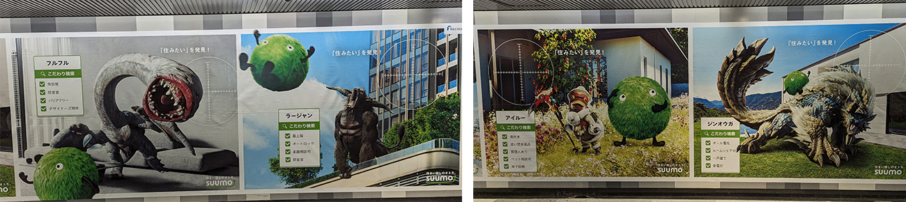 2024年2月に実施された不動産・住宅情報サイト「SUUMO」と人気ゲーム「モンスターハンター」のコラボ広告もおもしろい事例でした。