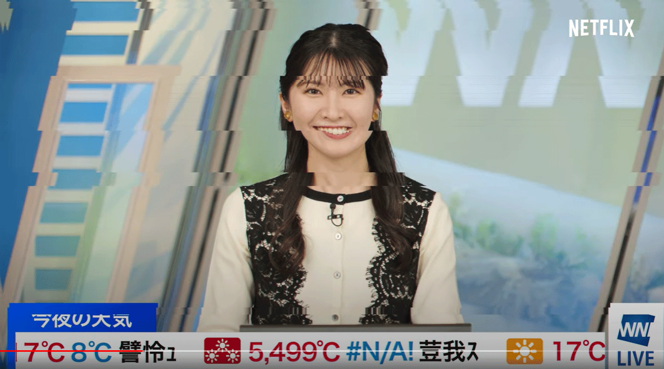 同広告では、ウェザーニュースで気象キャスターを務める駒木結衣(こまきゆい)さんが、明日の天気を伝えようとすると突然「明日は……来ないでしょう!」と発言。画面にエラーが表示され、作品の予告が始まる内容となっていました。