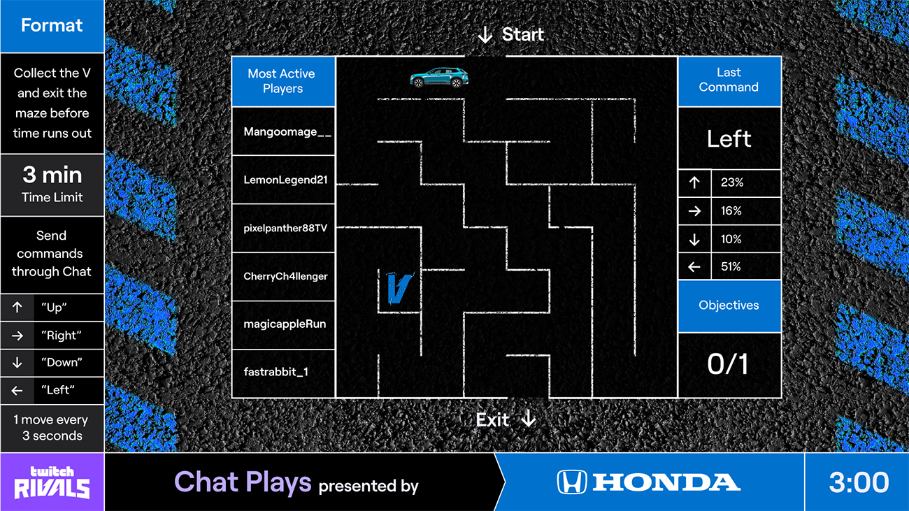 自動車メーカーの本田技研工業は、2024年7月に同社が展開する製品「シビック」最新モデルのプロモーションを行っており、その一環として当社のeスポーツトーナメントシリーズ「Twitch Rivals」の独占自動車パートナー契約を締結。Twitch Rivalsのファンコミュニティ上でキャンペーンを展開し、eスポーツ分野でのブランディングを行いました。
