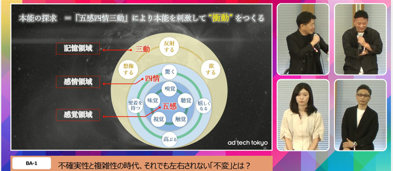 南雲:私たちはこの感覚の領域「五感」と感情の領域「四情」、そして記憶領域の「三動」に対するアプローチを、商品開発やコミュニケーションで行っています。