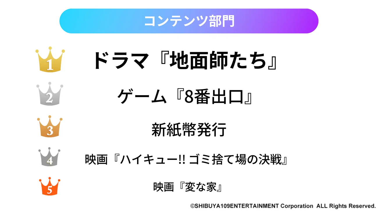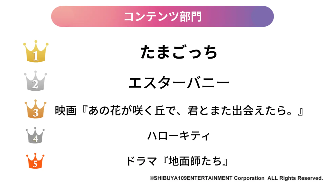 2024年はキャラクターコンテンツへの注目が高く、ランキング上位を占める結果となった。2023年から人気が続くガチャガチャや、2024年のバッグにぬいぐるみを付けて楽しむ動きからも影響を受けているようだ。
