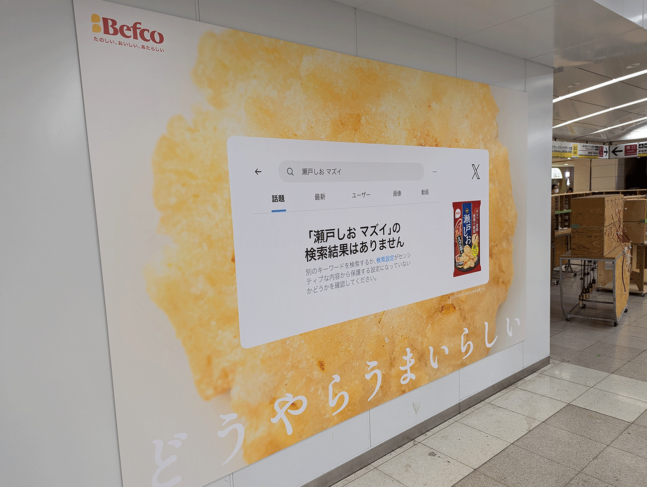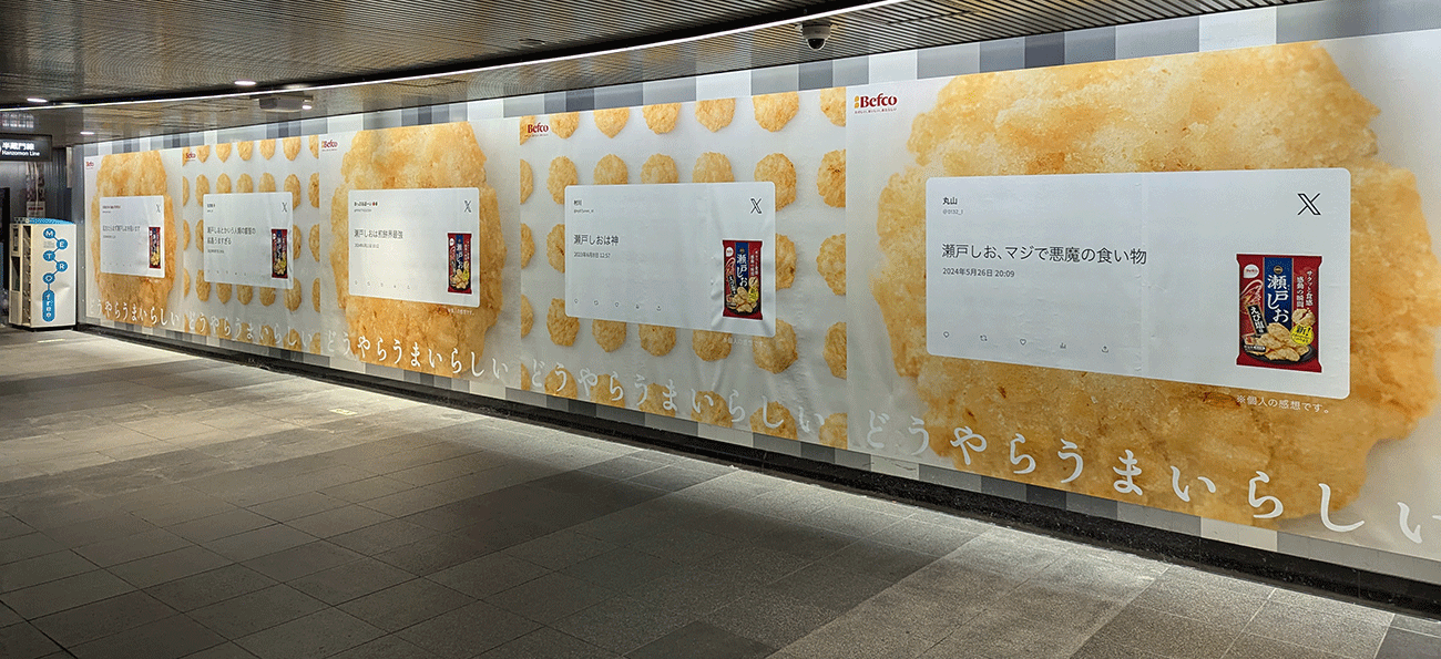2024年の下半期は、SNS上での投稿内容をそのまま盛り込んだ広告が複数見られました。まず紹介するのは、栗山米菓による「瀬戸しお」の広告です。