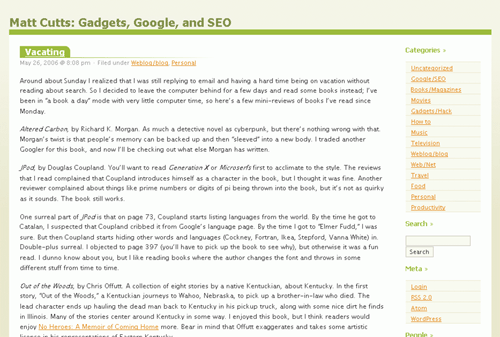 最後に、グーグルのアルゴリズム(順位付けルール)開発担当のエンジニアであるMatt Cuttsのブログ(Matt Cutts: Gadgets, Google, and SEO)のCSSには、下記のようにフォントサイズが設定されていることを紹介しておこう。