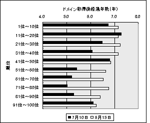 ※前月に比べ、1年程度、検索結果全体のドメインが若くなっている。さらに、法則性が乱れている。