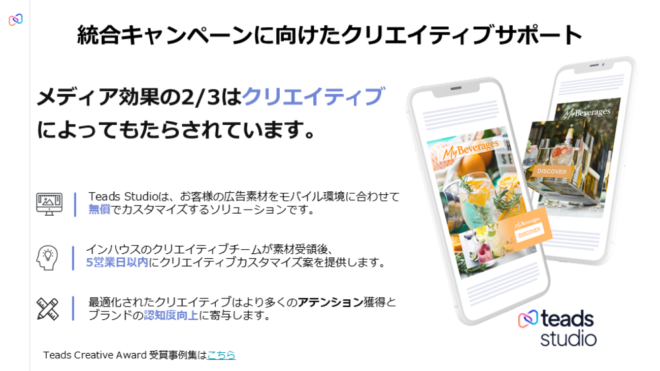 そんなTeadsは、顧客の広告素材をモバイル環境に合わせて無償でカスタマイズするソリューション「Teads Studio」を展開している。