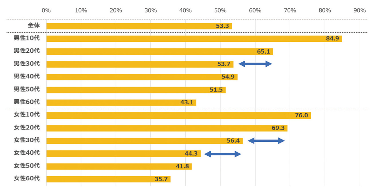 20代と30代の間の溝に関しては、いわゆるZ世代か否かでSNS上のコミュニティとの距離感の感じ方に差があるようです。女性40代に関しては、家事や育児などに関連する身の回りのコミュニティが活発でSNS上での交流より実生活での交流を重視する傾向があるのではないかと考えられます。