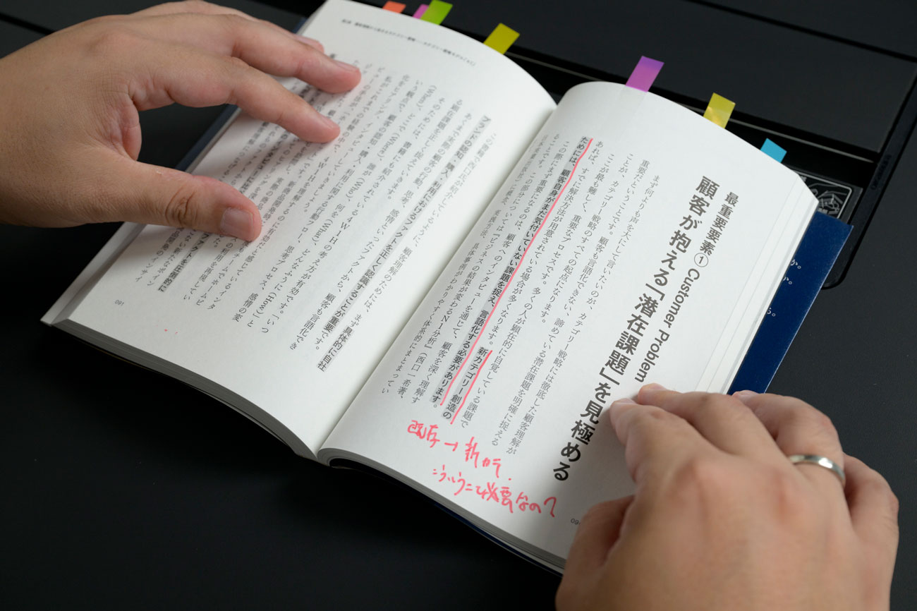 その際、まず行うべきは、自分たちの独りよがりな仮説や想像を広げるのではなく、顧客のファクトを見ること。その後に、時代や社会の変化に伴う不満、トレードオフ的に解決を諦めている課題、業界構造のゆがみなど、新しいカテゴリーが生まれやすいポイントに着目し、潜在課題を言語化していくことをおすすめしています。