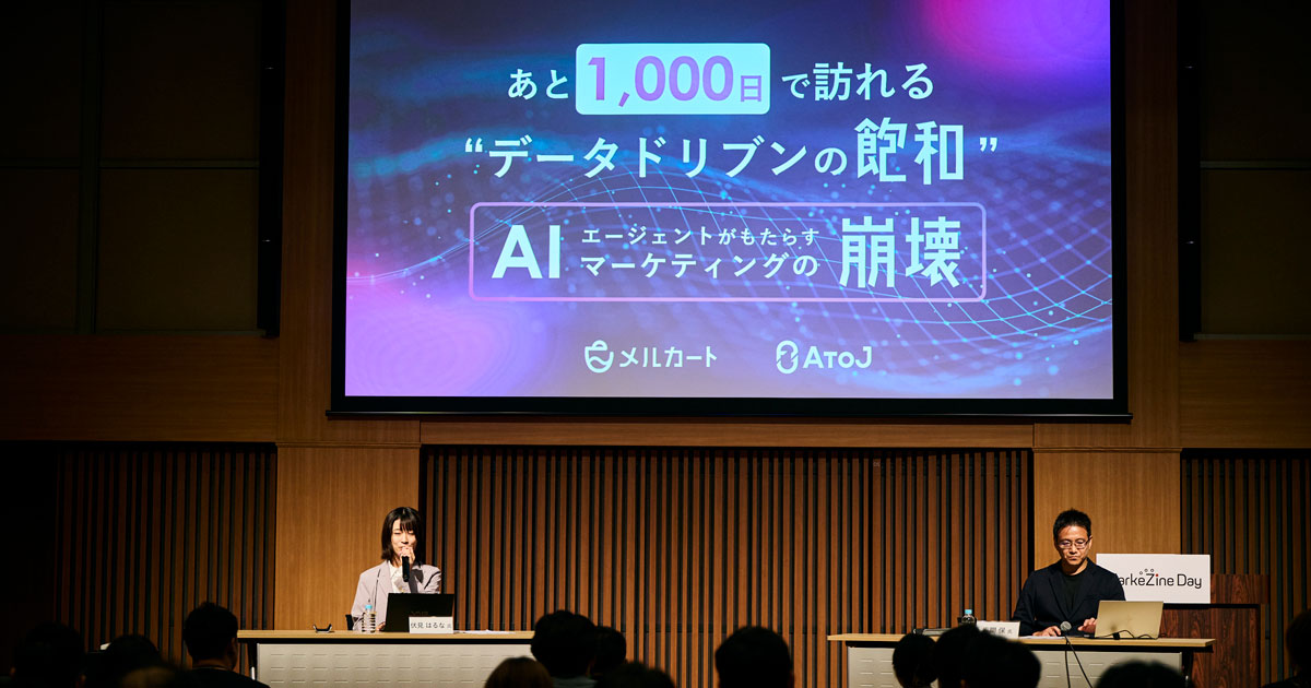 メルカートのマーケティング統括責任者を務める座間氏は、「誰でもデータが活用できる時代になったからこそ、単にデータを扱うだけでは差別化がしづらくなっている」と述べ、その状況を“データドリブンの崩壊”と表現した。
