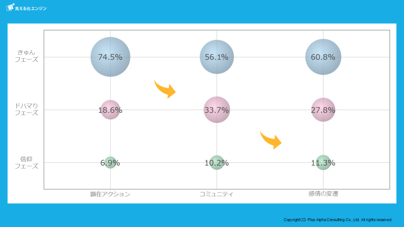 ただ、中身の割合自体には差異が見受けられる。「どハマりフェーズ」の割合は「コミュニティ」において最も高く、「信仰フェーズ」は「感情の変遷」において最も高くなっている。