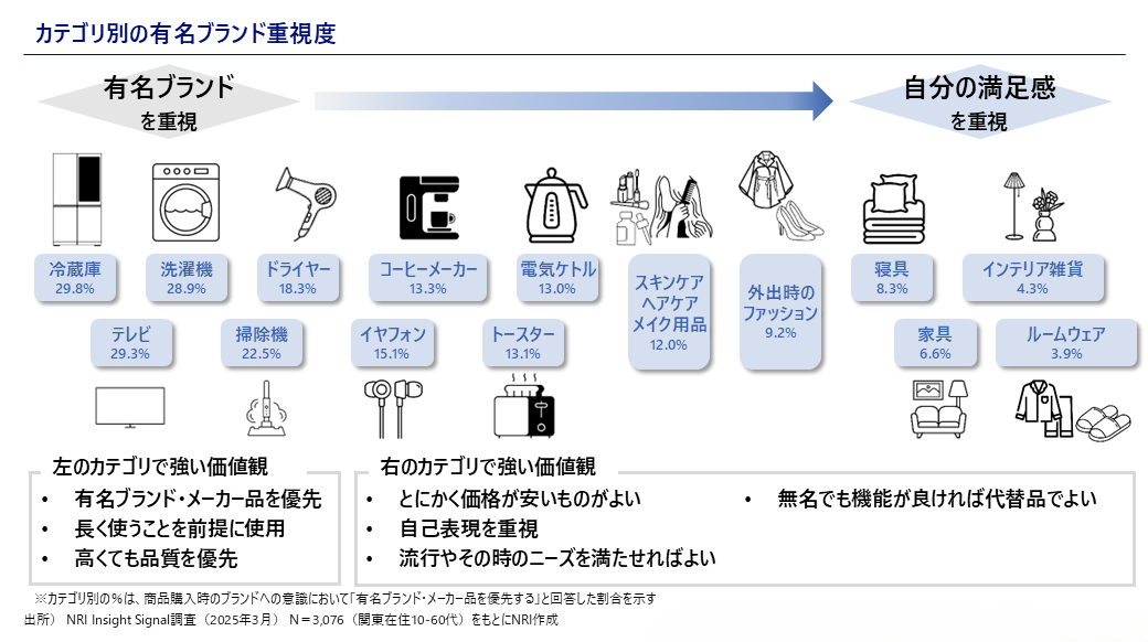 特にファッションやインテリアといった嗜好品カテゴリでは、「有名ブランド」ではなく「自分にとっての満足感」を優先する傾向が強まっている。