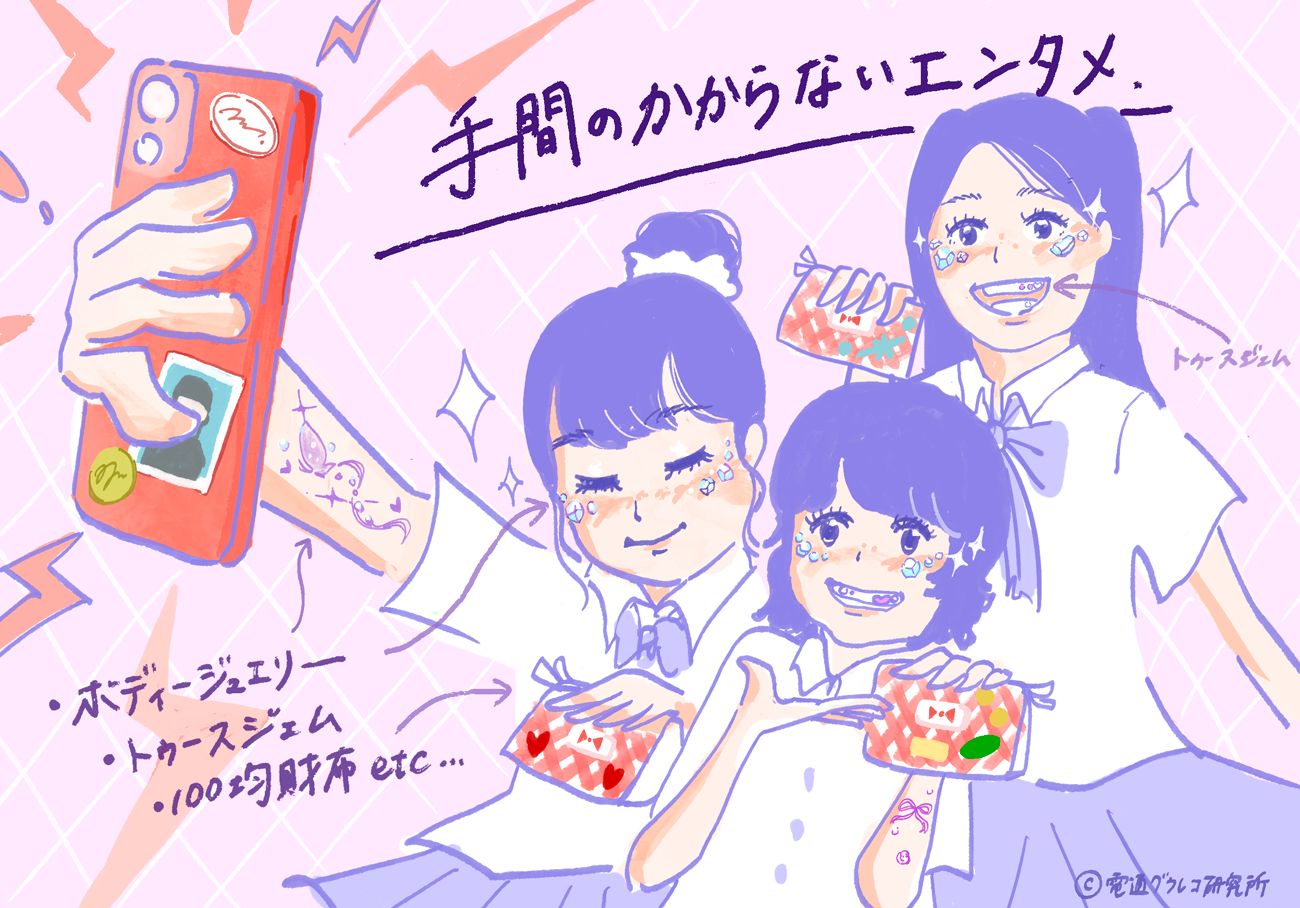 また、特にファッションや美容に焦点を当てた、「背伸びをしすぎずに“オシャレなこと”をしたい」というインサイトもあります。たとえば、肌にラメやストーンを張り付けてデザインを楽しむ「ボディージュエリー」や、同じく“歯”を装飾する「トゥースジェム」。これらは、タトゥーやピアスなどの“高価格”や“痛み”が伴うものではなく気軽な気持ちでチャレンジできるオシャレであるため、学校や親の目を気にせずオシャレをしたい女の子たちに人気の体験です。