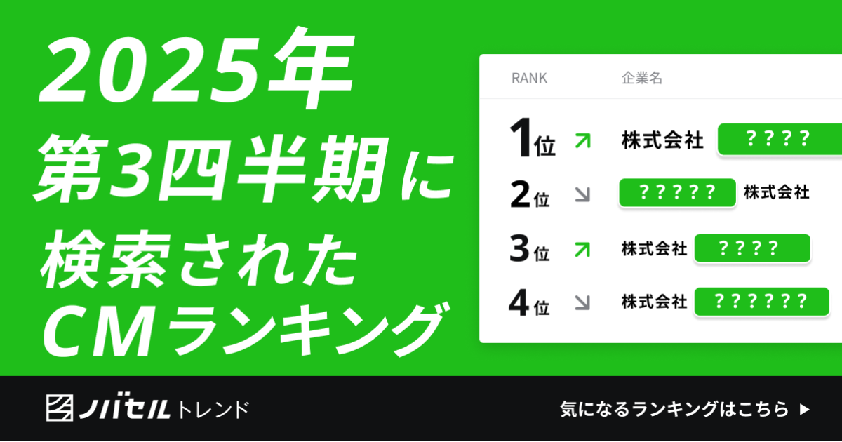 本記事では、2025年7月~9月の期間においてランキング上位のテレビCMを「ノバセルトレンド」で分析し、トレンドや傾向を見ていきます。
